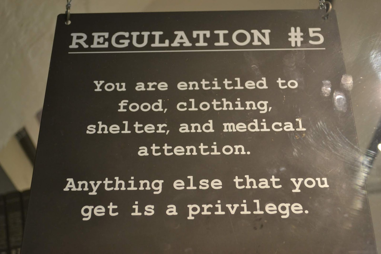 Como toda cárcel que he visitado, por más museo que sea en la actualidad, a mi me dio mucha tristeza, aunque ahora la retraten como estricta, pero bien tratante. En toda la visita cuelgan carteles con las reglas del lugar, la más famosa, la número 5: "Usted será dotado de comida, ropa, refugio y atención medica. Todo lo demás que obtenga es un privilegio"